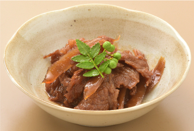 米沢牛からにじみ出る風味豊かな脂が、コクのある甘じょっぱいタレと合わさり深みのある味を醸し、ごぼうの食感が心地よいアクセントの甘露煮となっています。